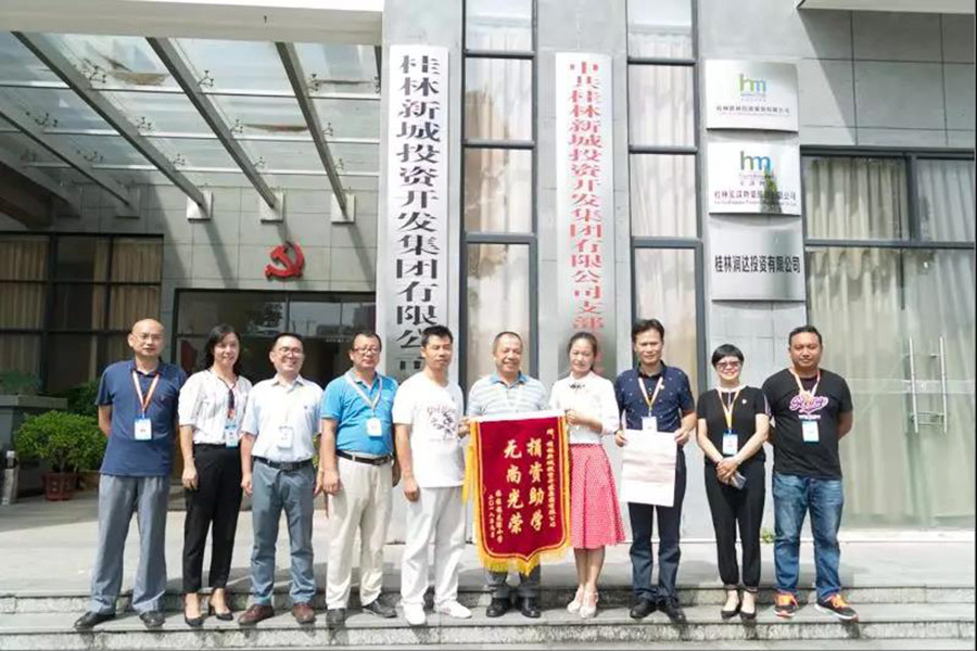 2018年9月18日上午,臨桂鎮(zhèn)花堽小學(xué)校長(zhǎng)秦開勝、黨支部書記秦海燕將一面印有“捐資助學(xué),無尚光榮”的錦旗送到新城投資集團(tuán)。集團(tuán)公司黨支部書記周道林、集團(tuán)經(jīng)營(yíng)班子、支部委員一起接受錦旗。