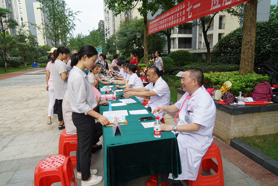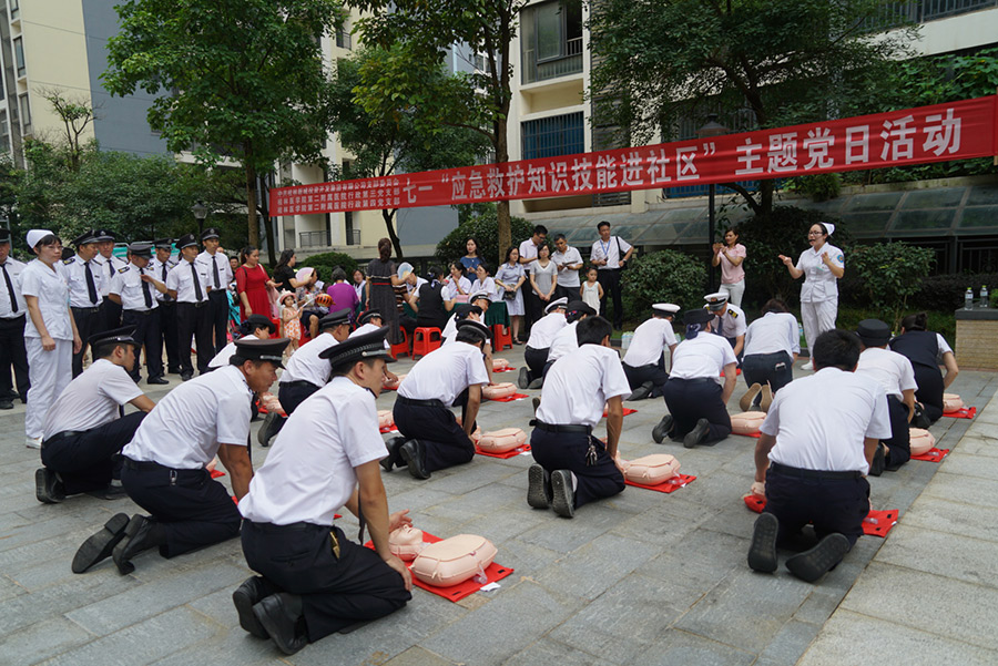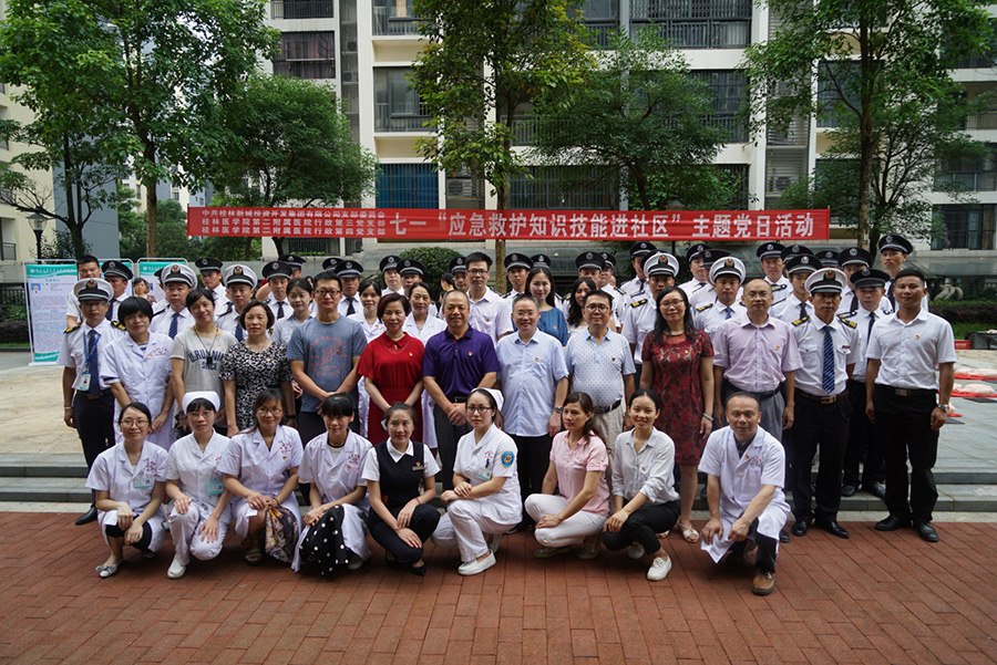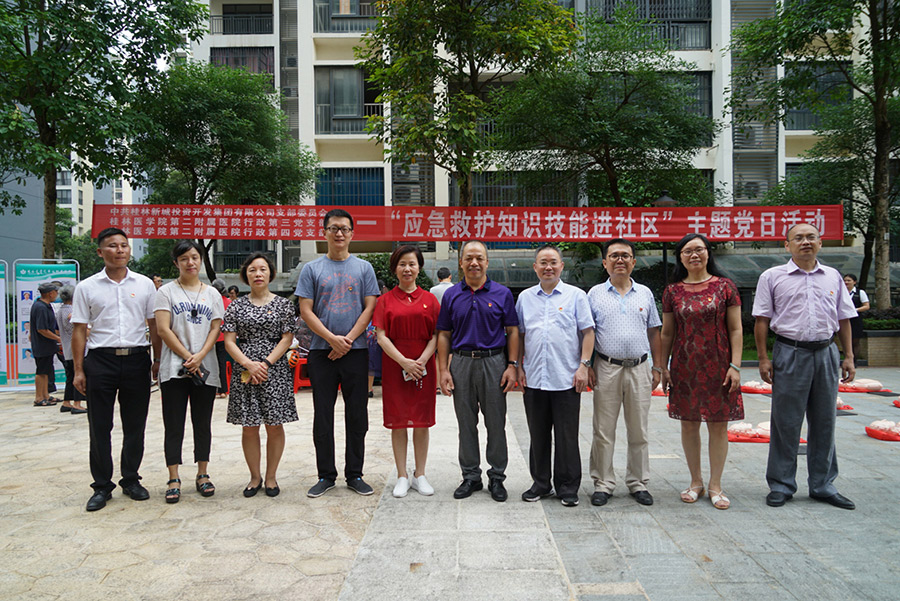 為充分發(fā)揮黨員志愿者的先鋒模范帶頭作用,增強(qiáng)轄區(qū)居民對健康的關(guān)注,加強(qiáng)對夏季防病的健康意識,6月29日(周六)上午,新城投資集團(tuán)黨支部和桂林醫(yī)學(xué)院第二附屬醫(yī)院行政第三、第四黨支部在桂林市臨桂區(qū)新城國奧小區(qū)舉行“應(yīng)急救護(hù)及健康知識進(jìn)社區(qū)”主題黨日活動。