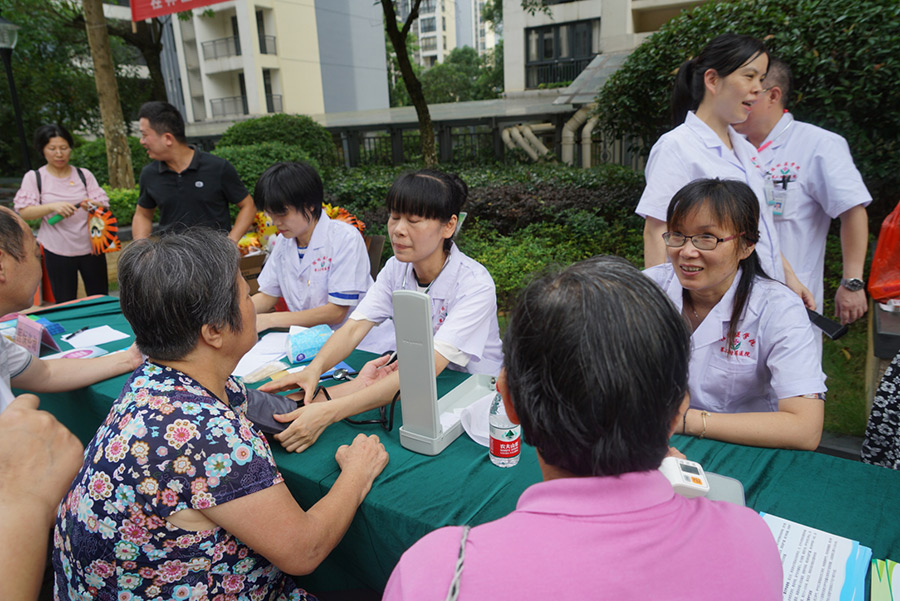 80歲的張老先生笑著說“現(xiàn)在不用去大醫(yī)院也可以享受到專業(yè)的醫(yī)療服務(wù),關(guān)鍵還是免費(fèi)的”。在黨員志愿者、醫(yī)護(hù)人員共同努力下,活動井然有序的進(jìn)行,現(xiàn)場充滿濃濃的溫情。