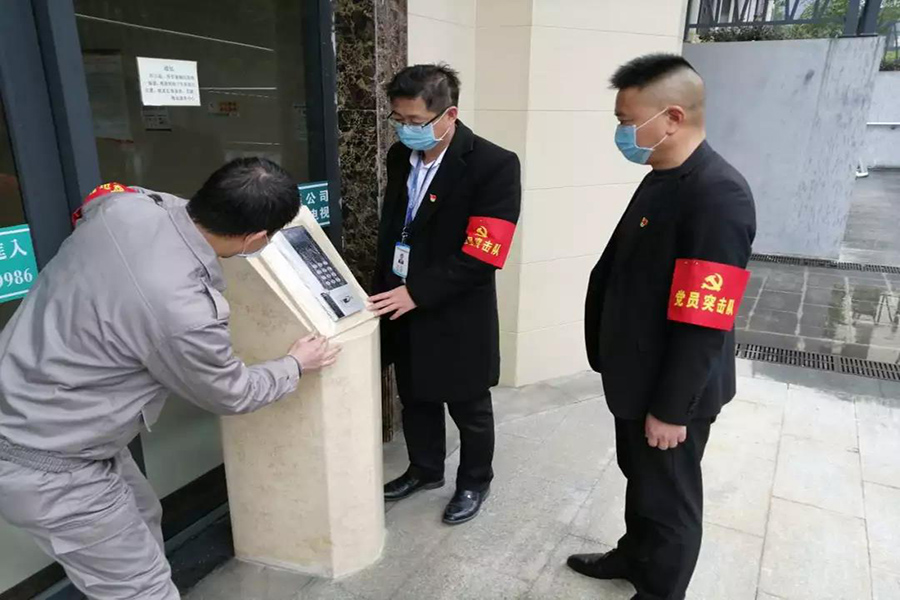 宏謀物業(yè)工程部黨員周成積極響應(yīng)公司黨支部的號(hào)召,帶領(lǐng)工程部全員提前返崗,為小區(qū)所有入戶門對(duì)講系統(tǒng)及電梯按鍵穿上每天一換的保鮮膜“保護(hù)外套”、為每臺(tái)電梯內(nèi)裝上業(yè)主按鍵時(shí)使用的抽紙等,最大程度的做好疫情防控工作,給業(yè)主創(chuàng)造一個(gè)健康、 安心的居家環(huán)境。