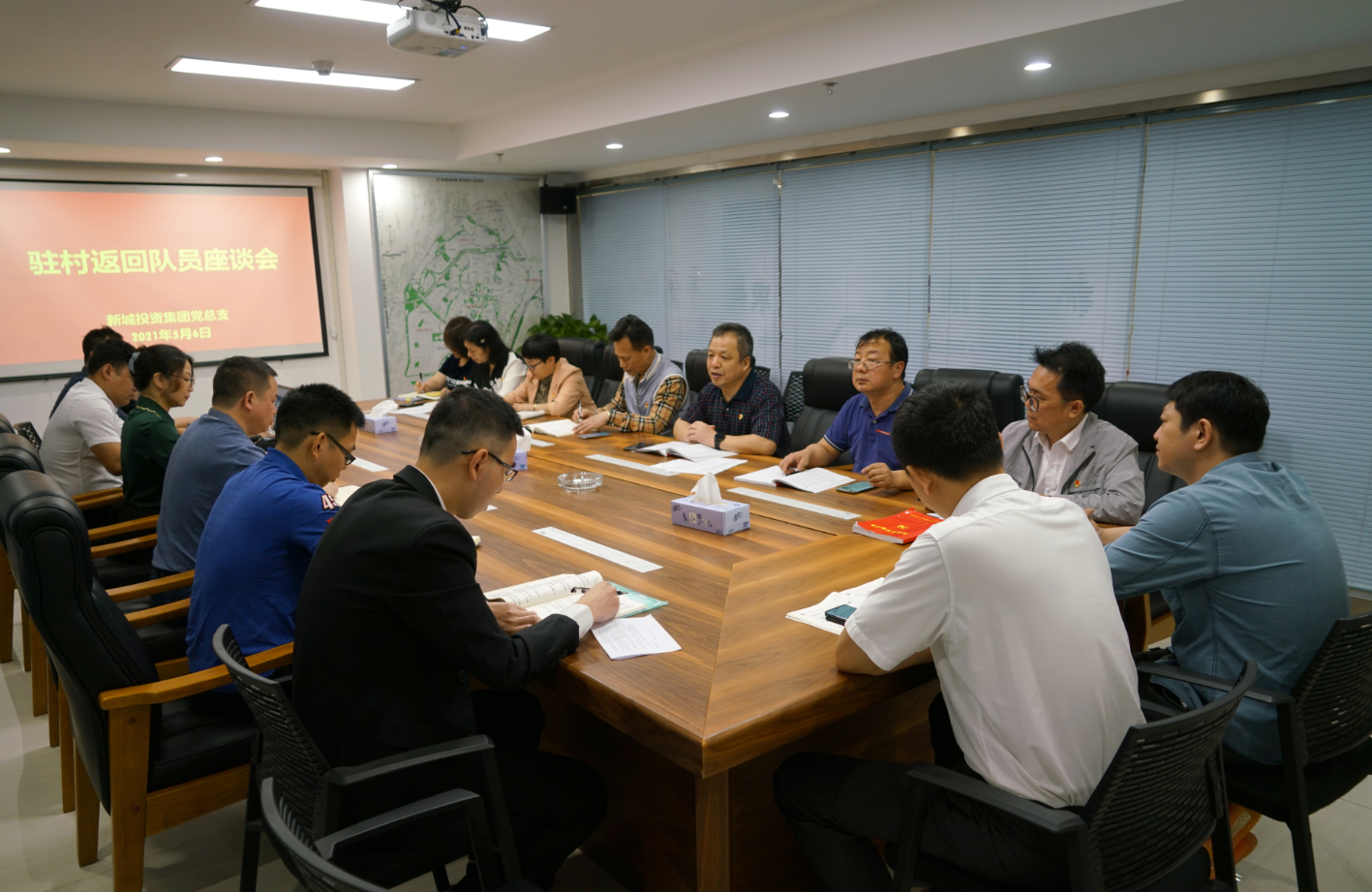 5月6日,桂林新城投資集團(tuán)召開駐村返回隊員座談會。集團(tuán)黨總支書記、董事長、總經(jīng)理周道林出席會議并講話。座談會由黨總支組織委員、工會主席譚力源主持。