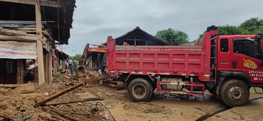 當(dāng)天下午,譚力源會同臨時聯(lián)合黨支部副書記王偉財帶領(lǐng)成員單位中建八局廣西公司桂林項目部技術(shù)人員到達(dá)羅江村委受災(zāi)的4個自然村,開展實地察看,初步形成了損毀、堵塞道路的清理方案。為更好的統(tǒng)籌推進(jìn)羅江村救災(zāi)工作,五通鎮(zhèn)黨委在羅江村委辦公地召集相關(guān)單位碰頭,并根據(jù)現(xiàn)場情況優(yōu)化調(diào)整推進(jìn)計劃。