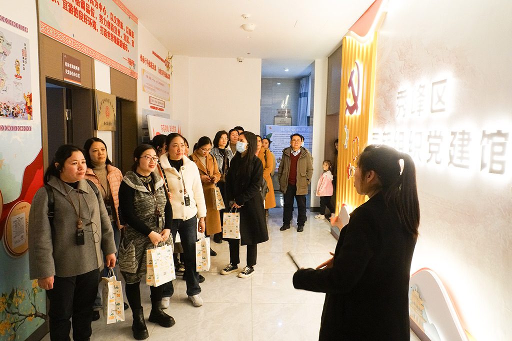 第二項(xiàng)活動(dòng)是參觀桂花文化體驗(yàn)館,在兩新組織黨建館,大家重溫了百年大黨從成立之初到新時(shí)代的光輝歷程,一幅幅舊照片展示了一段段珍貴的歷史,一行行舊文字記載了激情燃燒的歲月。參觀過后女職工們深受激勵(lì)和鼓舞,表示要充分發(fā)揮自身積極熱情、耐心細(xì)致、善于做群眾工作的優(yōu)勢(shì)和特點(diǎn),在各自崗位作出新的成績(jī)。在桂花文化主題館,女職工們?cè)谥v解員的帶領(lǐng)下,深入了解了桂林與桂花的深厚淵源,以及獨(dú)特文化魅力,近距離體驗(yàn)桂花的香味與傳奇。通過觀看沉浸式桂花動(dòng)畫,引得大家傳來陣陣的驚嘆聲、歡呼聲,那是能夠感同身受的桂花雨落和沁人心脾。桂花蜜、桂花酒、桂花潤(rùn)膚乳等一系列衍生產(chǎn)品展現(xiàn),讓大家增進(jìn)了對(duì)桂花及桂林傳統(tǒng)民族文化的了解和興趣,增強(qiáng)了地域民族文化認(rèn)同感。