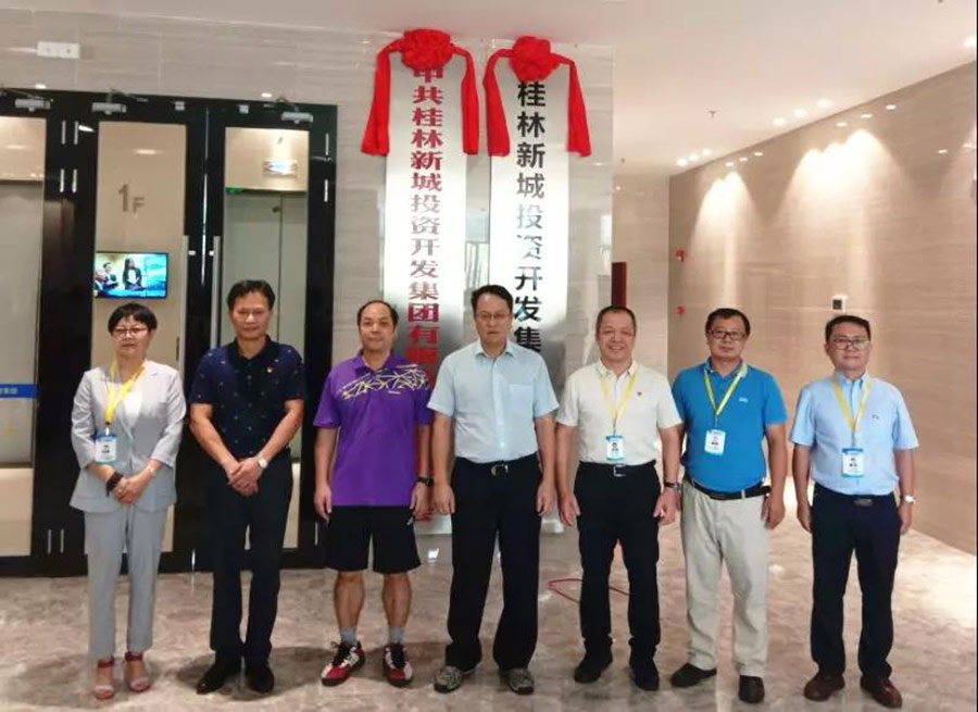 中共桂林市臨桂區(qū)委書(shū)記、中共桂林市臨桂新區(qū)工委第一副書(shū)記、桂林市臨桂新區(qū)管委會(huì)主任何新明,新區(qū)工委委員、管委會(huì)副主任覃正東,以及新城投資集團(tuán)領(lǐng)導(dǎo)班子共同為“中國(guó)共產(chǎn)黨桂林新城投資開(kāi)發(fā)集團(tuán)有限公司支部委員會(huì)”、“桂林新城投資開(kāi)發(fā)集團(tuán)有限公司”揭牌。