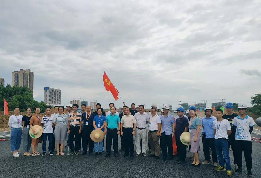 為發(fā)揮黨組織和黨員的先鋒引領(lǐng)作用,項目開工初期創(chuàng)建了“指揮部+項目部+黨小組”三位一體工作機制,讓黨旗映紅“勝地建設(shè)”,啟動項目“紅色引擎”,在項目上與施工單位中建筑港建立了沙塘大道聯(lián)合黨小組,集團公司領(lǐng)導(dǎo)以普通黨員身份加入黨小組,同時組建了黨員突擊小組,把黨的組織優(yōu)勢和政治優(yōu)勢轉(zhuǎn)化為生產(chǎn)經(jīng)營優(yōu)勢,推動項目快速建設(shè)。