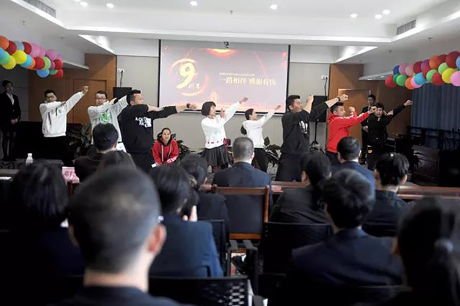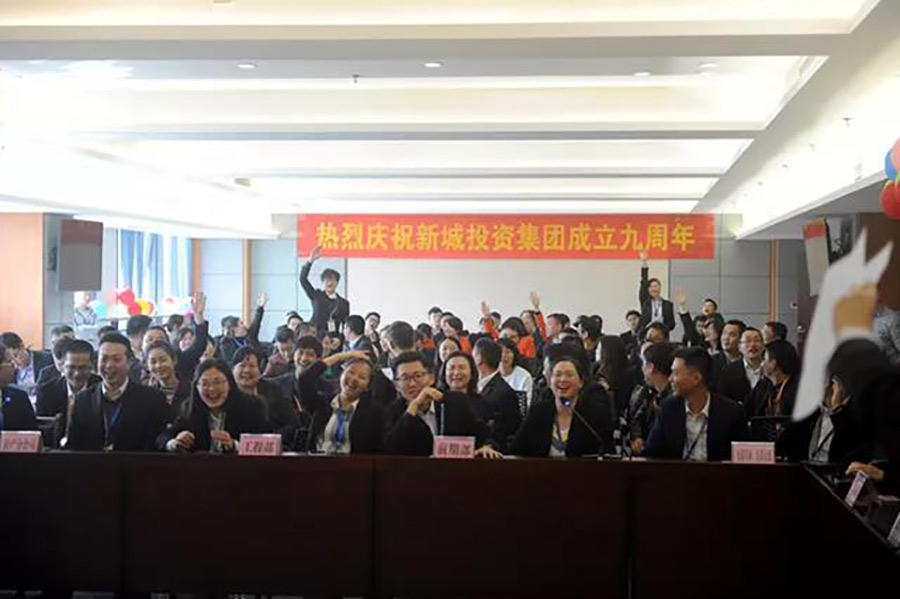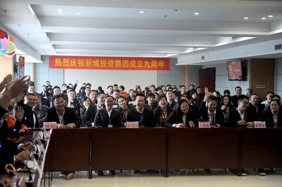 2018年3月26日,為慶祝桂林新城投資開(kāi)發(fā)集團(tuán)有限公司成立九周年,新城投資集團(tuán)全體員工齊聚新城商務(wù)酒店辦公樓會(huì)議室,以高昂的情緒迎接集團(tuán)公司九周年慶典活動(dòng)。本次慶典活動(dòng)包括詩(shī)歌朗誦、“快閃”表演、集團(tuán)公司發(fā)展史知識(shí)問(wèn)答競(jìng)賽等多個(gè)環(huán)節(jié)。