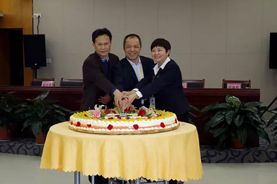 圖為集團(tuán)公司部分班子領(lǐng)導(dǎo)切九周年生日蛋糕