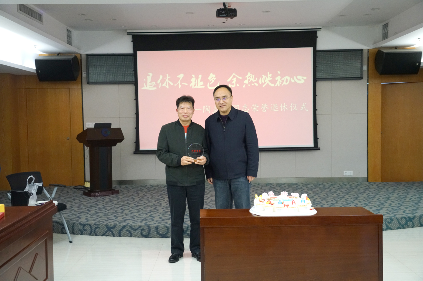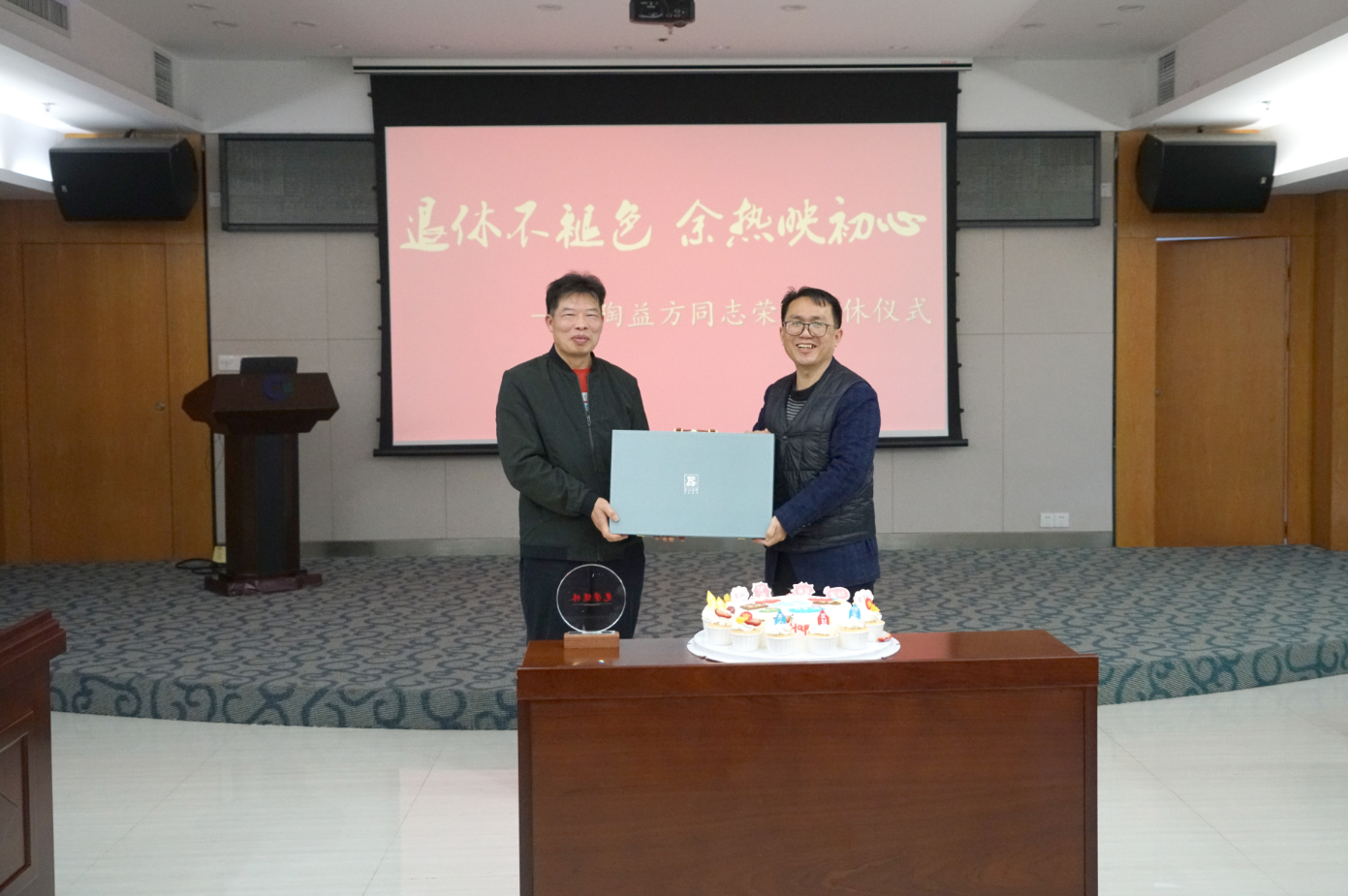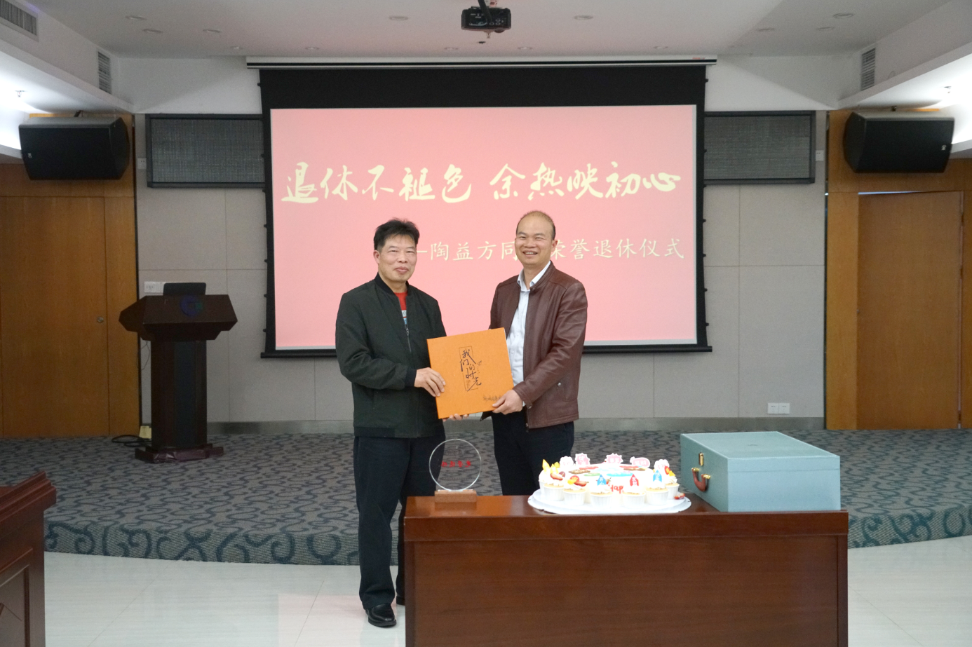 隨后,集團公司領(lǐng)導(dǎo)向陶益方同志贈送退休禮物、相冊及鮮花,切蛋糕并合影留念。